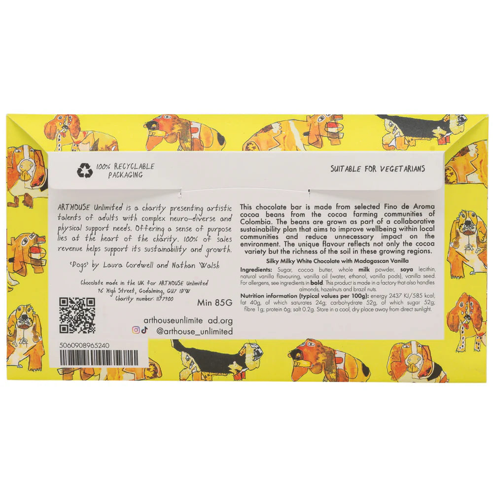 Happy Hounds, Silky Milky White Chocolate Bar with Madagascan Vanilla, Arthouse, 85g