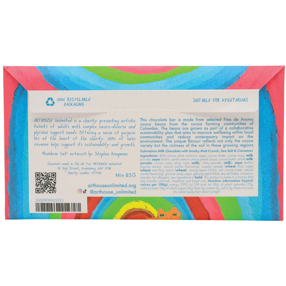 Rainbow Cat, Milk Chocolate Bar with Smoky Malt Crunch, Sea Salt & Cinnamon, Arthouse, 85g