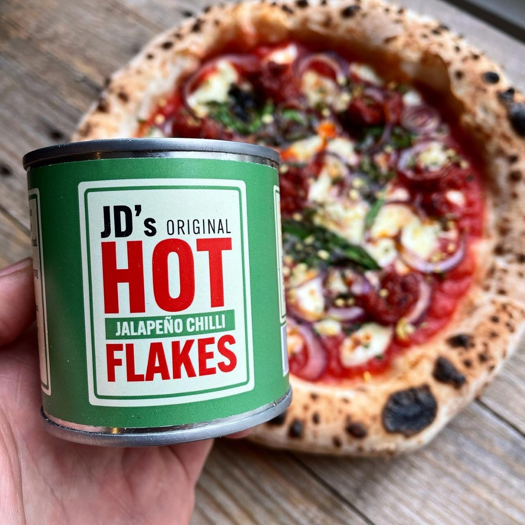 JD's Hot Flakes are an all new, thick cut, premium dried green jalapeño flakes. A low to medium heat, but one that will bring flavour and zing to your food. Sprinkle over pizza, pasta, stir fry or chilli.