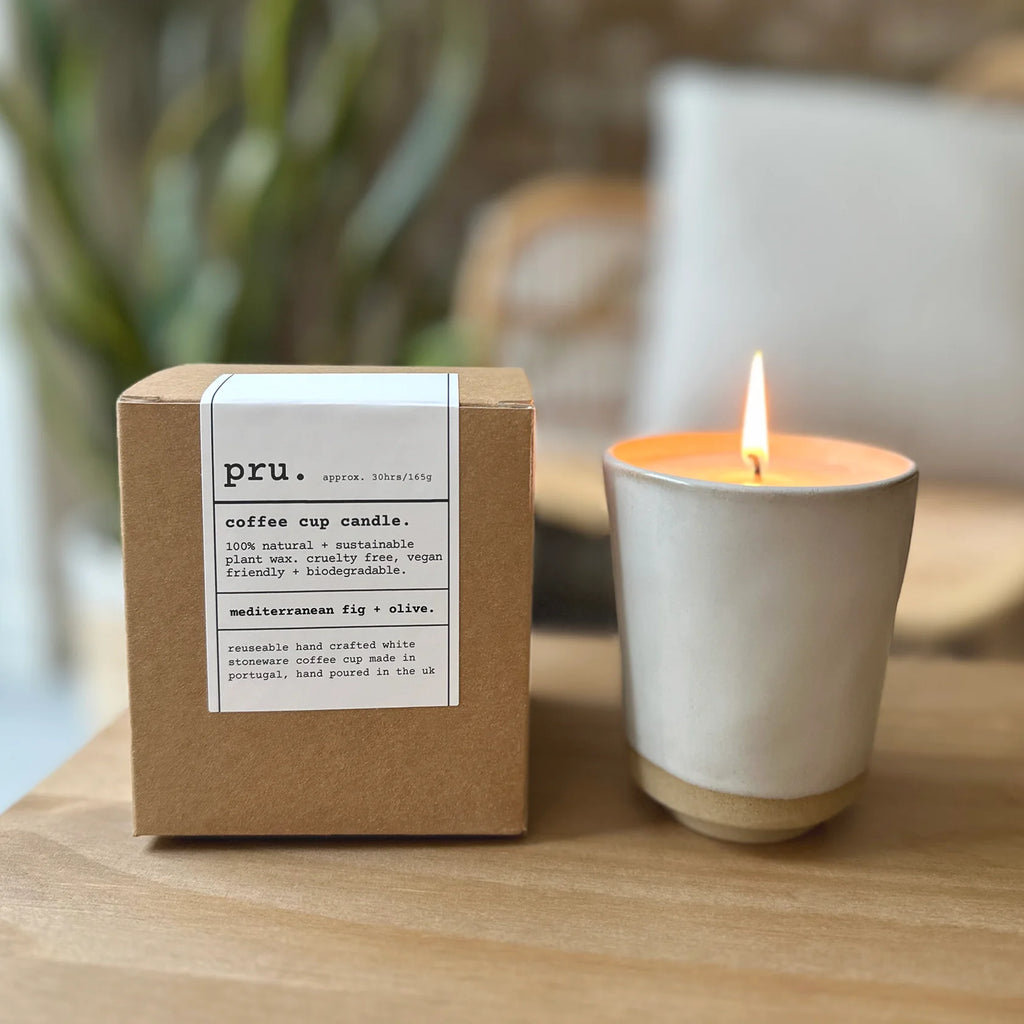 Mediterranean Fig+ Olive, Ivory Coffee Cup Candle, Pru.