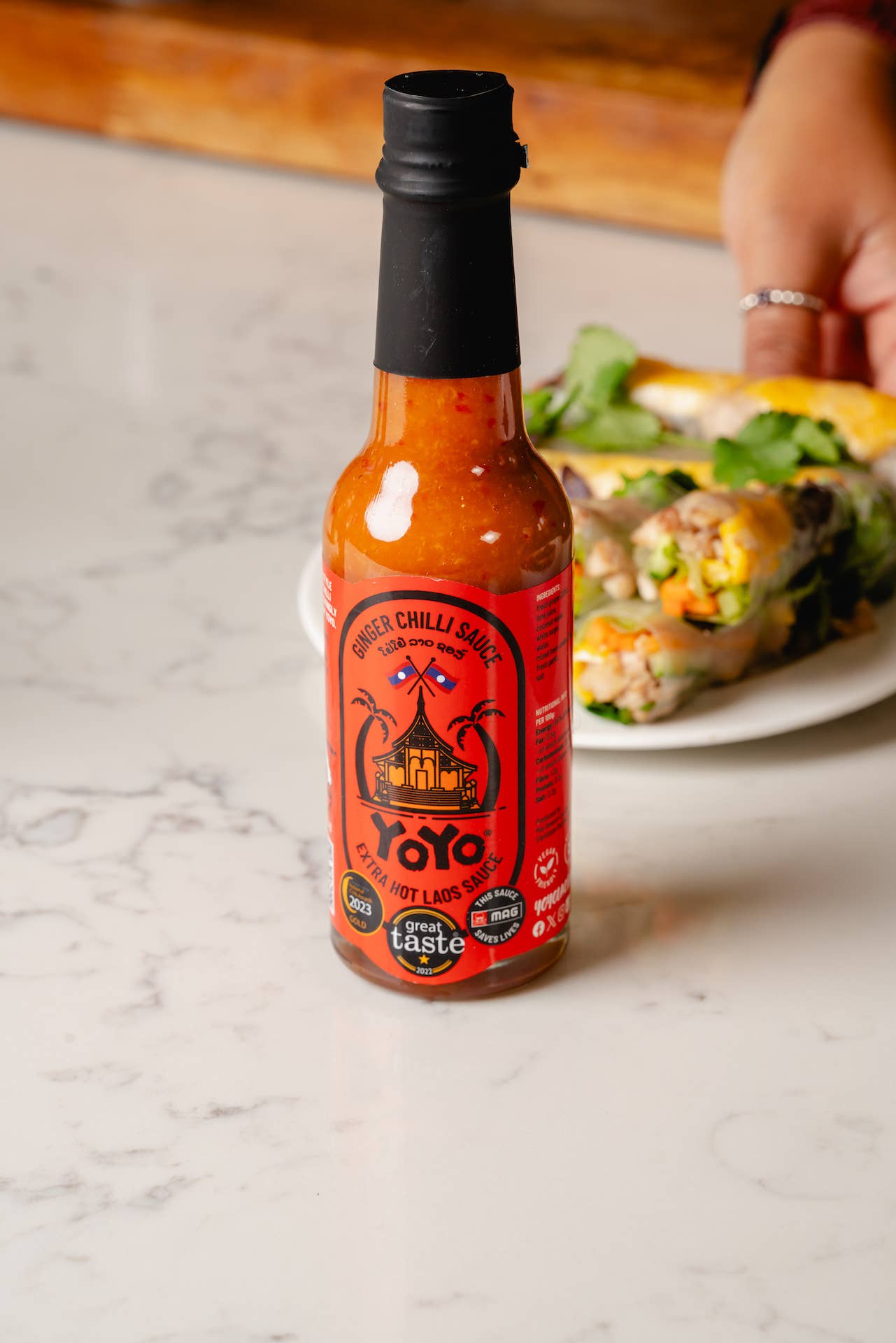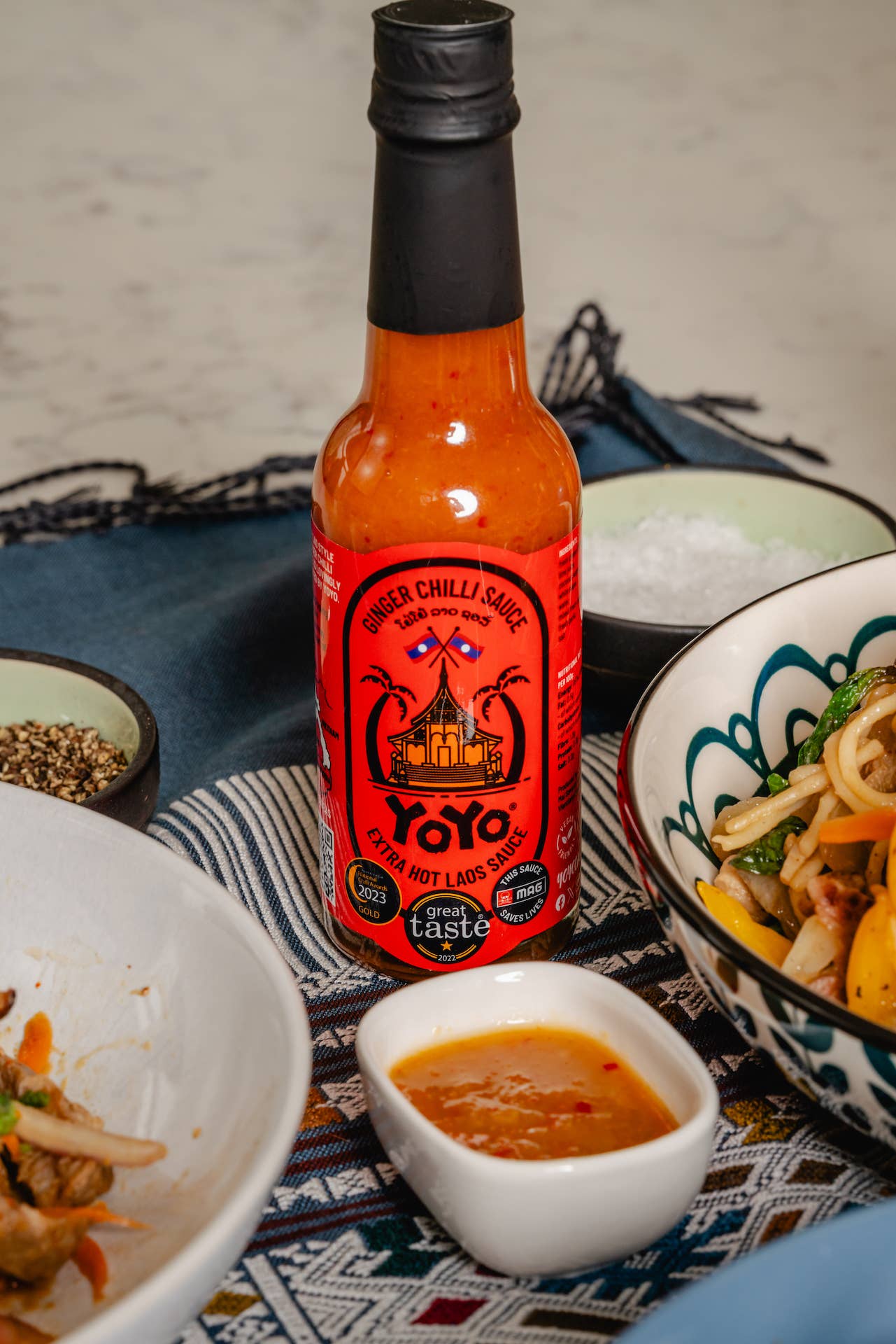 Extra Hot Yoyo Laos Sauce - Our extra hot ginger chilli sauce has a unique authentic taste from South East Asia. Made with fresh ingredients our sauce really is unique and versatile as a dipping sauce, marinade, added to a stir fry or salad. Vegan and gluten free. Great Taste Award Winner 2021.