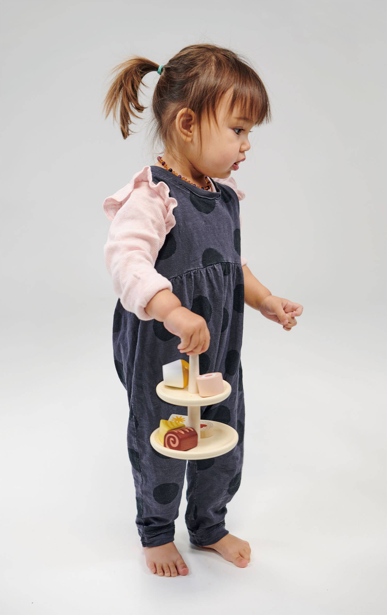 This wooden tea party stand toy by Mentari includes a two-tier cake stand and 7 tea party fancies. Easy for little hands to hold and each cake is made from solid wood and painted in yummy bright colours.