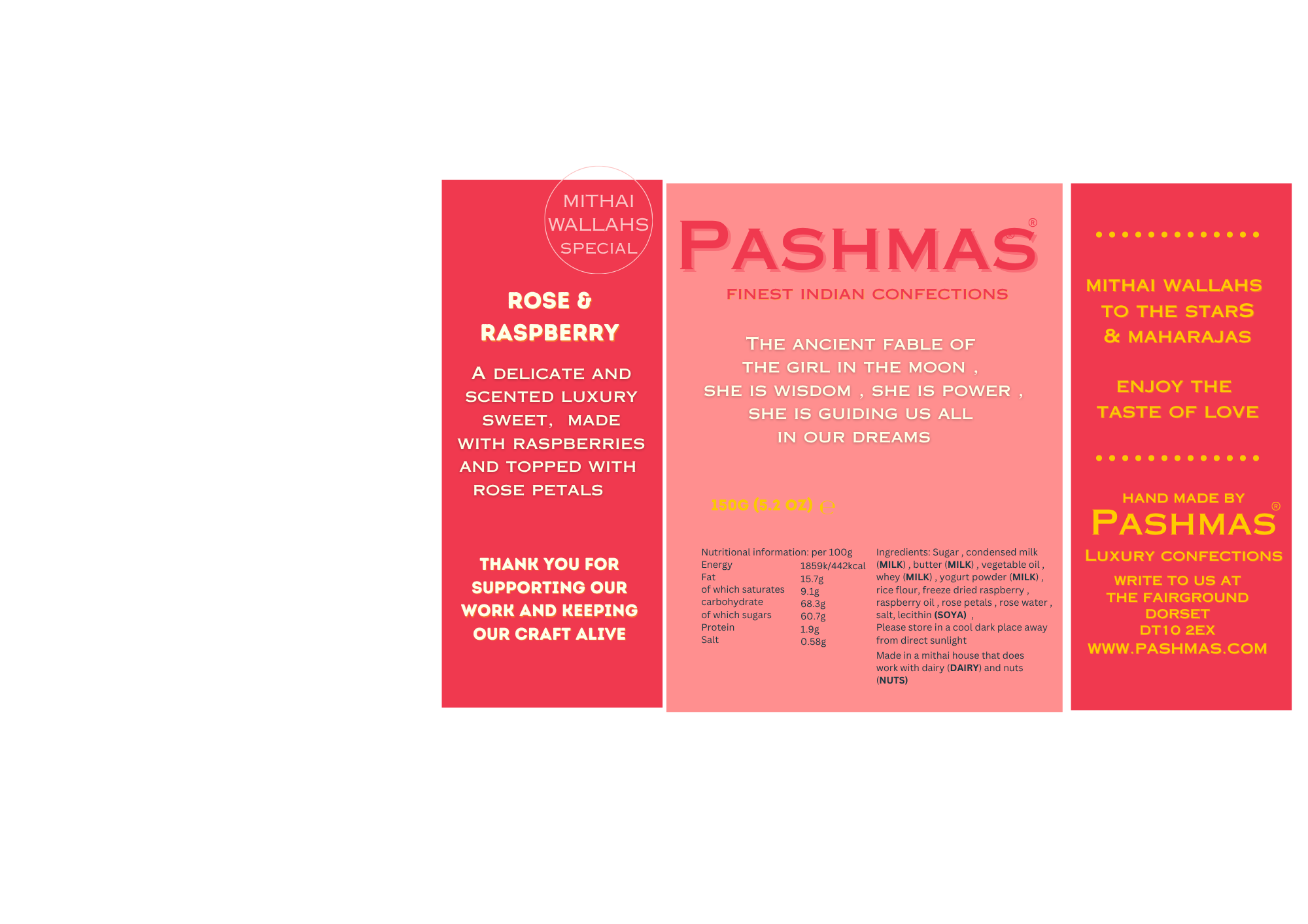 Girl in the Moon - Raspberry and Rose Fudge, PASHMAS Luxury Indian Confections, 150g