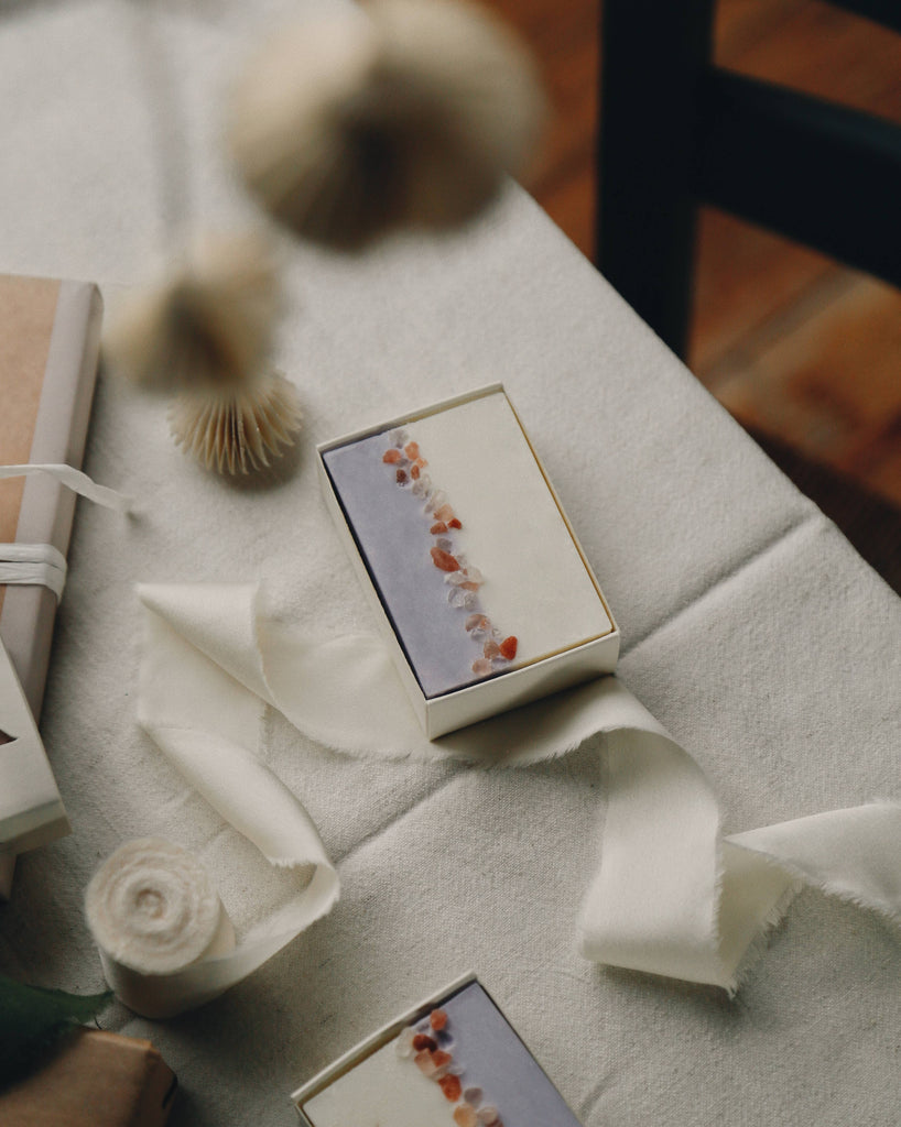 KEY INGREDIENTS: Himalayan Salt Our salt soaps consist of 50% Himalayan pink salt, renowned for its detoxifying, exfoliating, and rejuvenating properties, thanks to its rich trace mineral content. Organic Coconut Oil This cleansing powerhouse creates a luxurious lather, transforming the salty soap into a smooth, lotion-like foam.